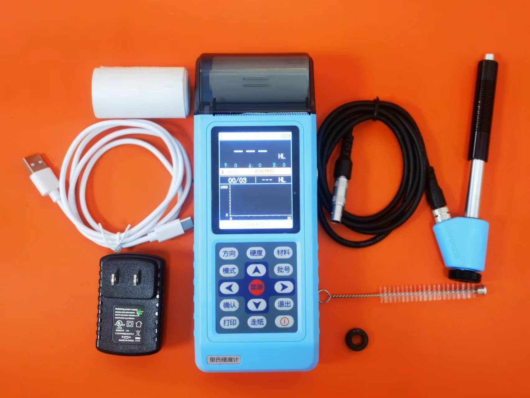 主机一台、D型冲击装置1只、小支撑环1只、尼龙刷(I)1只、高值里氏硬度块1块、充电器1只、ABS防水仪器箱1只。