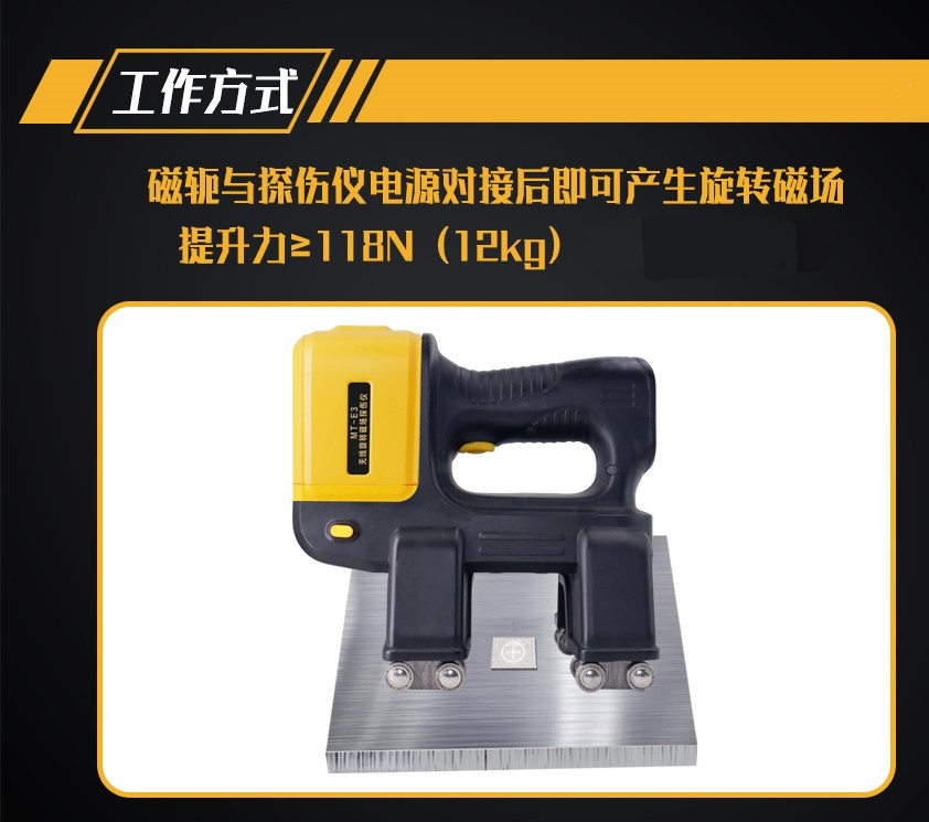 8、空载自动识别及软件控制保护,电流自动调整,防止仪器过载损坏。具有恒磁功能,另外电量不足提升力下降时自动断电,保证探伤灵敏度;